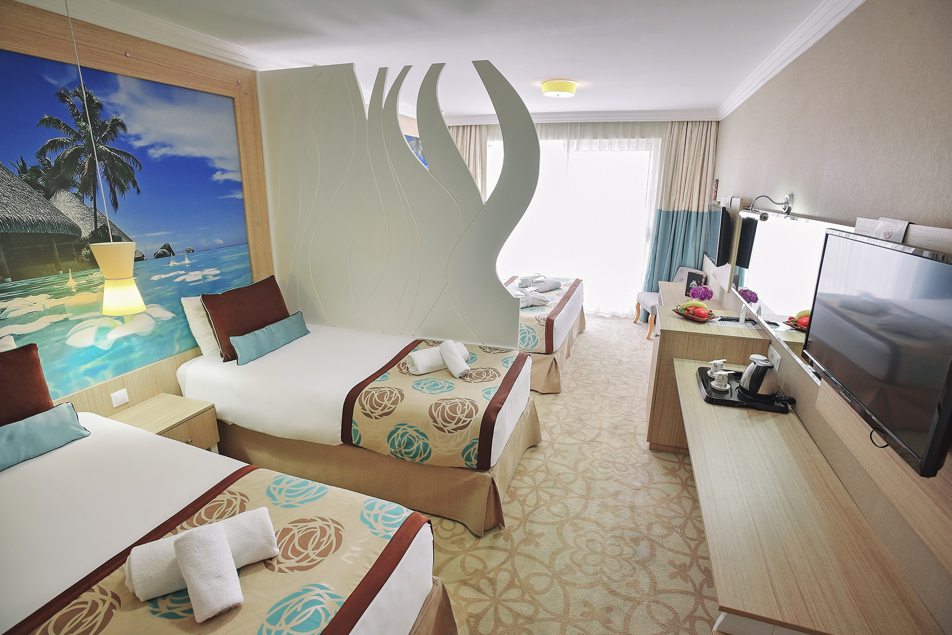 Our Junior Family Room has view over magnificent pine forest; The Room has one large bedroom with one queen size bed plus two Single beds and has one bathroom. Room is elegantly furnished with complimentary amenities pack, 2 flat screen LCD TV tea/coffee making facilities, air condition, central heating, hairdryer, digital safe and minibar.